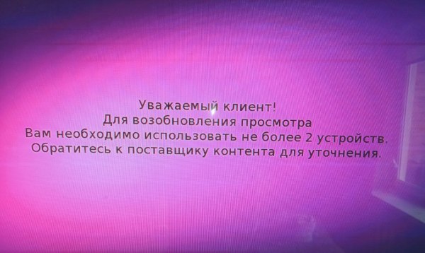 ??? quote "[Скриншот] Уважаемый клиент! Для возобновления просмотра Вам необходимо использовать не более 2 устройств"
